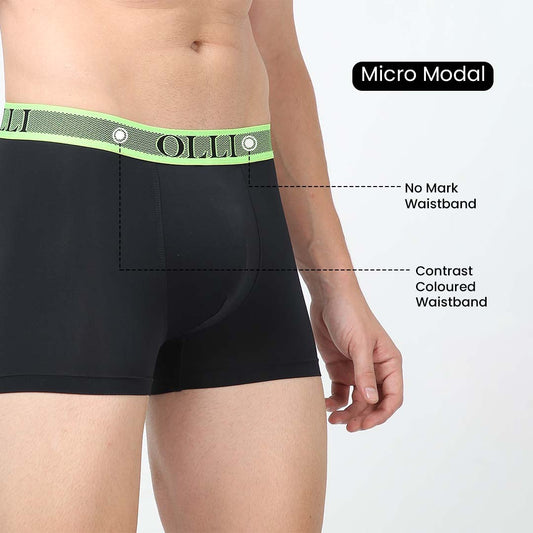 Men's Maroon, Orange & Black Super Combed Cotton Rib Solid Trunk (Pack of 3)